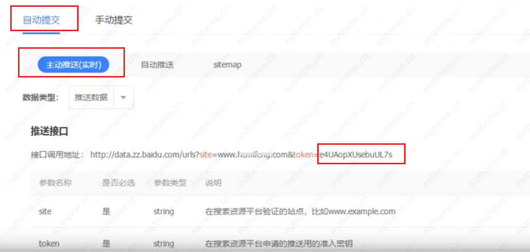 2,点击>>自动提交>>主动推送>>复制 (token= )红框内的内容