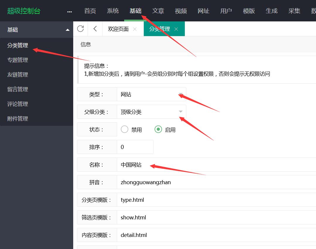 然后编辑网站的首页模板,修改你后台网址管理的ID分类