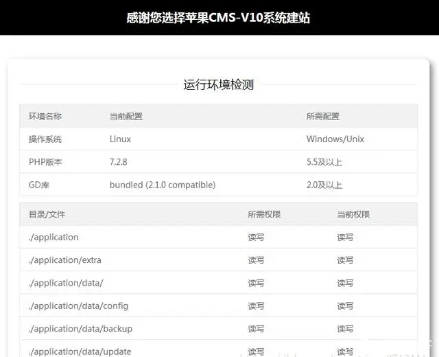 6、点击同意协议后,会进行运行环境检测,如果缺少fileinfo扩展插件或是always_populate_raw_post_data模块不支持的话,需要安装一下。如果没有缺少直接下一步就可以了。