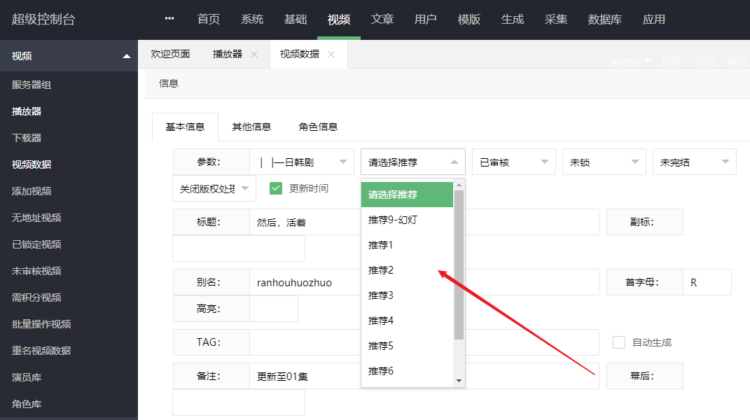 2、设置推荐数,具体推荐几要看模板的调用写的是几,一般为5或是9