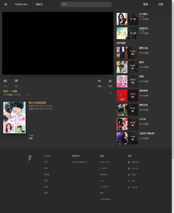 这并不是一款主流设计模板,但却足够有特色,采用黑白经典配色,极致简约风格,突出大气电影站/x站主体内容,绝对会让你在一众影视站中脱颖而出。在拿到该模板原始版本后,已经进行了对整站广告、暗链剔除,并修复了滑动窗口bug;目前是直接可以使用状态。