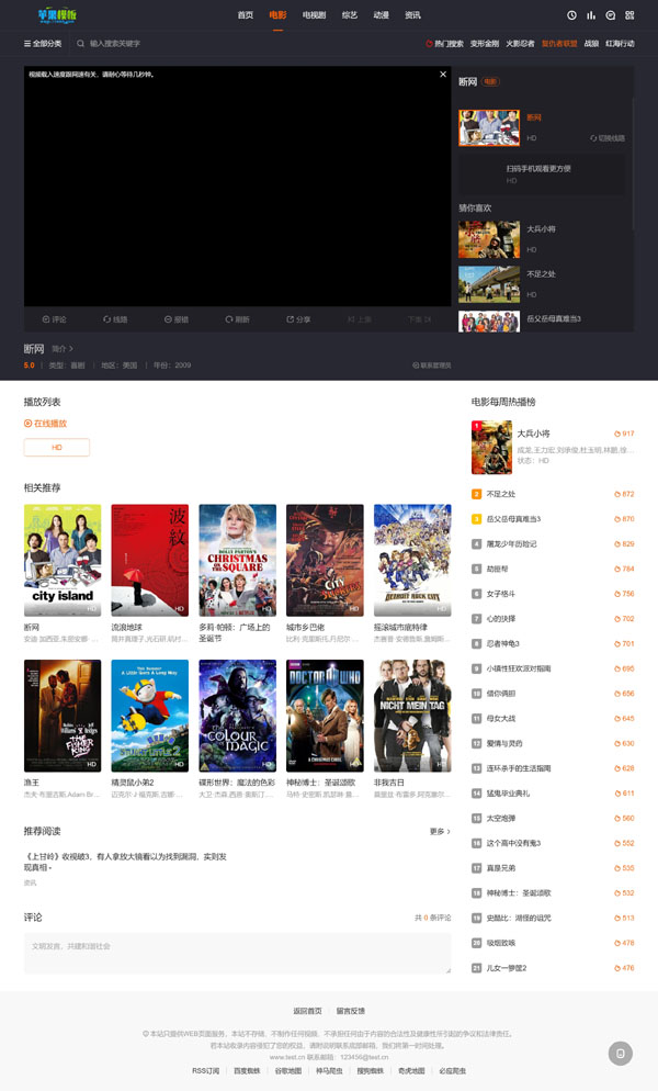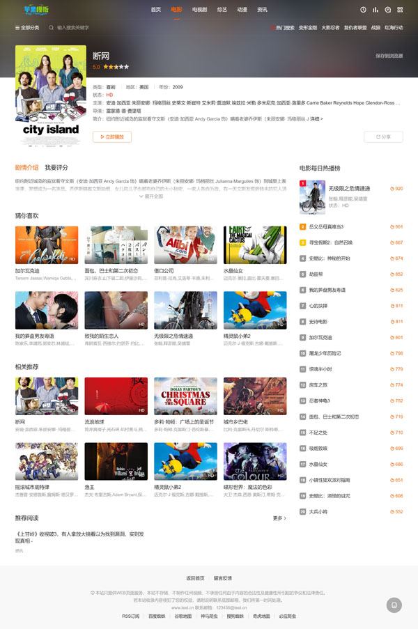 最近在浏览网站时候,看到一款古早款影视网站,发觉其首页幻灯片跑马灯设计,以及详情页的紧凑安排布局,很有特点,便花了一些时间将其仿了下来,因为原始模板过于老旧,不支持移动端,便有进行了pc、wap自适应的开发。