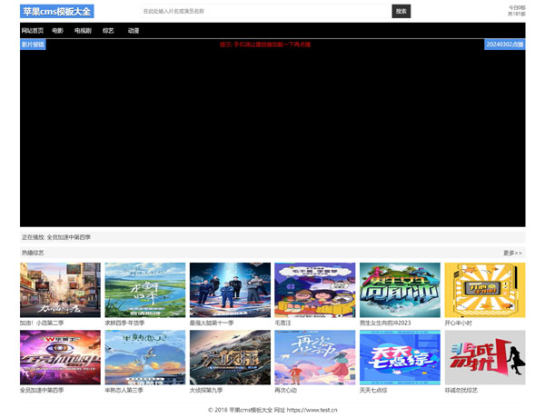 最大化删减影视模版中图片,取消传统幻灯片、跑马灯等js及图片展示,加入了热播视频、月播视频、推荐视频等标签聚合文字内容(并预留版面,你可以聚合希望其他视频内容)。
