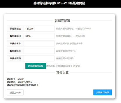 安装页面默认初始密码,注意登录后台后自行修改