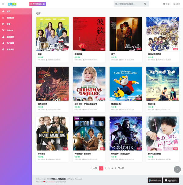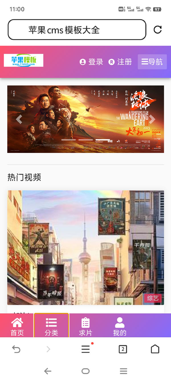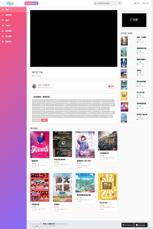 该模版文件完整,首月、分类页、播放页,并预留好了广告位;且代码已支持pc、wap自适应访问,推荐模板!