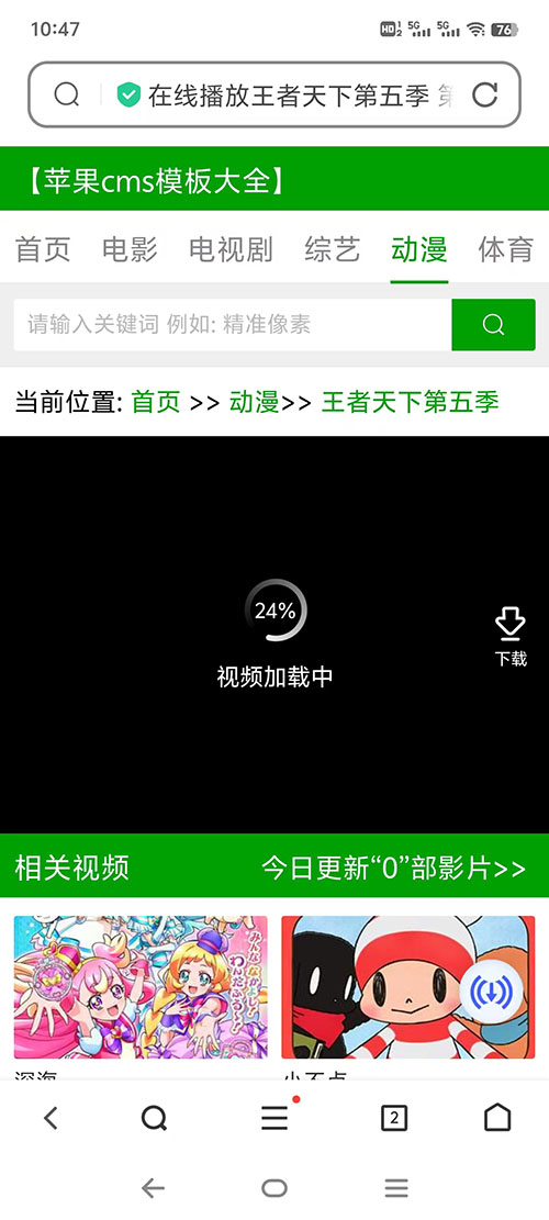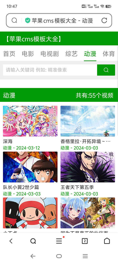 苹果cms模板中,绿色风格比较少,这是一款纯手机绿色电影/x站模板,首页直达播放页,舍弃了详情页设定,更加结构扁平化。