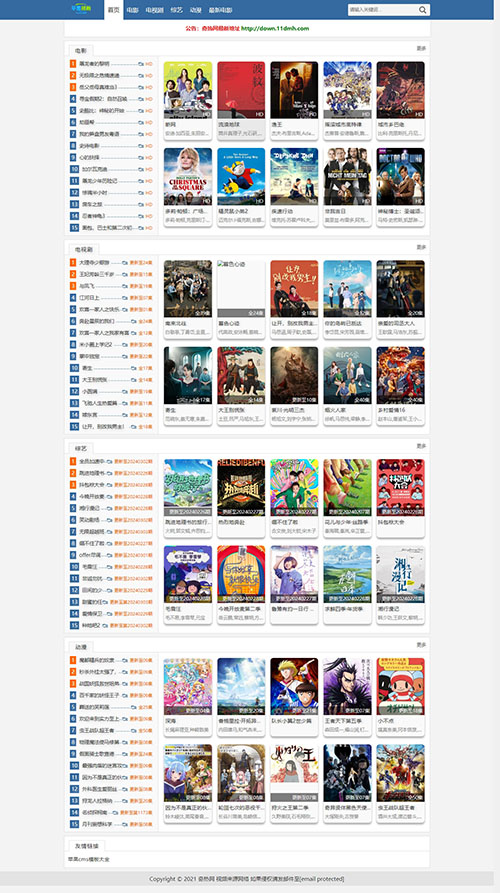经典蓝色简约设计,代码兼容pc、wap自适应访问,特别适合于影视网站,推荐模板!