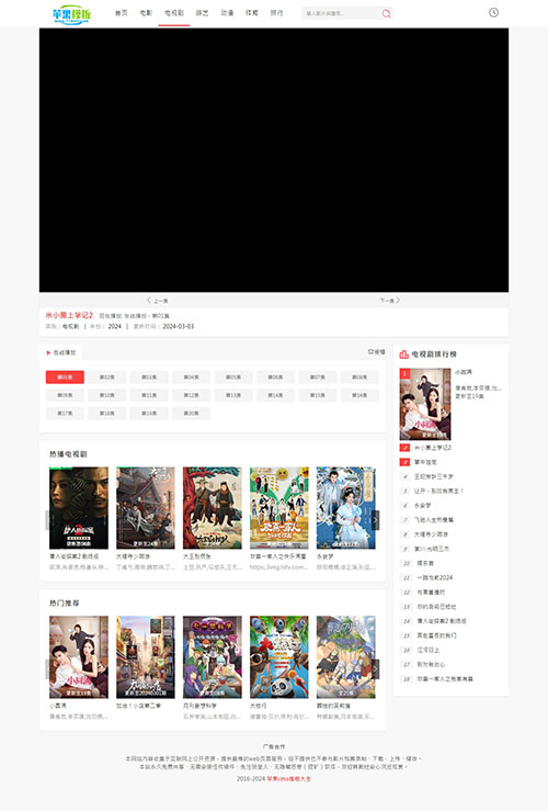 白色简约设计,首页banner及播放页设计非常出色,特别适用于影视站、电影站模板,代码兼顾pc、wap自适应访问,推荐模板!