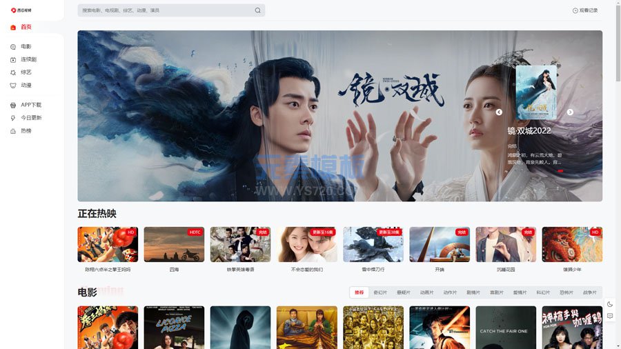 这是一款简约清新,美观大气,单纯的影视模板,没有复杂的页面与功能,含有主题后台,自由切换双色的自适应模板,主题无会员中心,资讯,明星,评论等相关模块。