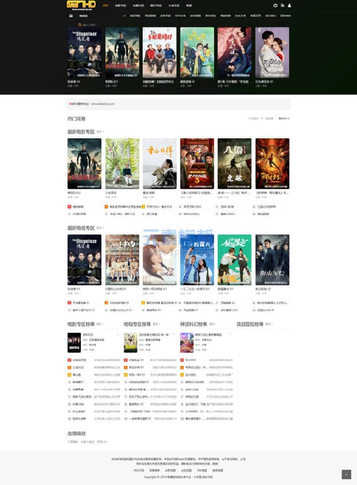 经典黑色简约设计,兼容pc、wap自适应访问,特别适合于影视网站,内容页支持下载功能,播放页支持播放器跟随移动,推荐模板!