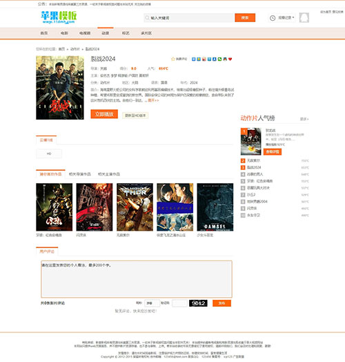 红色与橙色暖色系风格,美观大方,代码标准兼容性强。该模板为苹果CMS8电脑端。