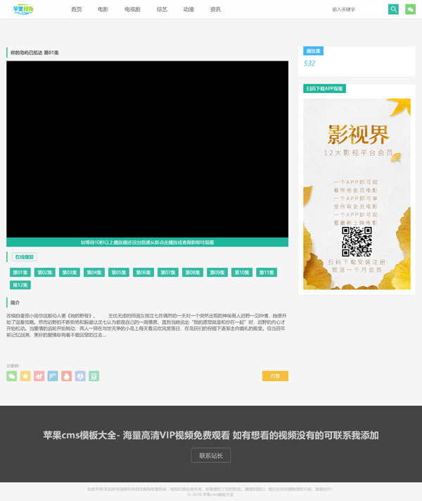 区别于传统影视站模板,该模板没有设计详情页,直接以首页、分类,直达播放页,层级更加的扁平化,大大提高了用户便利性。代码支持pc、wap自适应访问,推荐模板!
