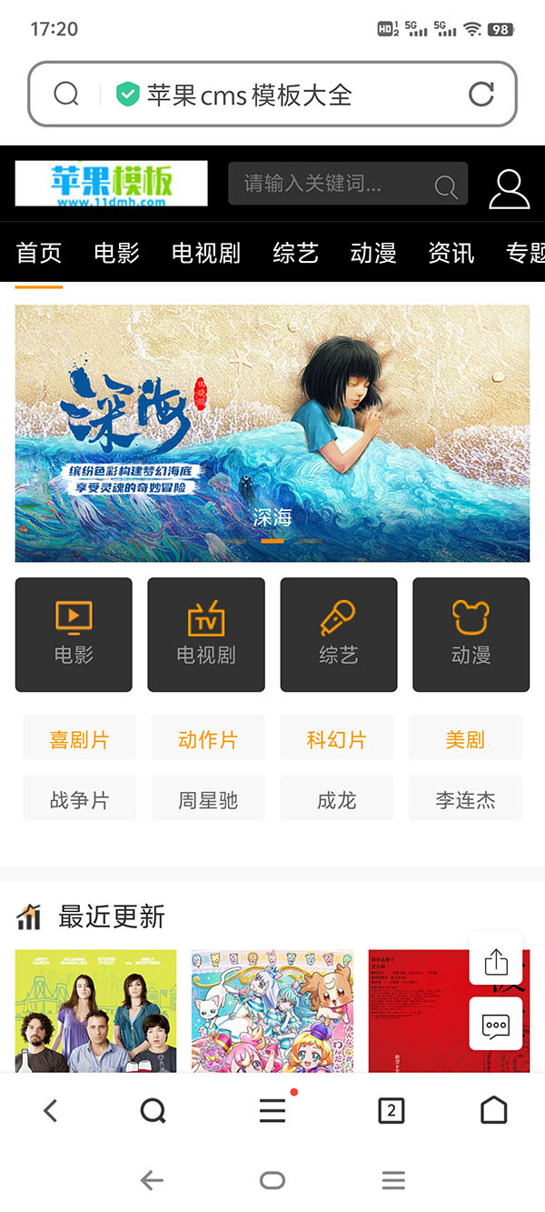 黑色简约设计,兼容pc、wap自适应访问,特别适合于影视网站。