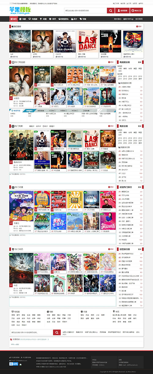 经典黑色影视模板,布局紧凑合理,兼顾SEO需要,已精简原模板代码,提高了页面访问速度,经测试无误,提供给大家,该模板唯一缺点,就是只有电脑端,稍显遗憾,建议可以跟本站黑色影视网站手机端5号模板组合一下,实现pc、wap双端模板访问。