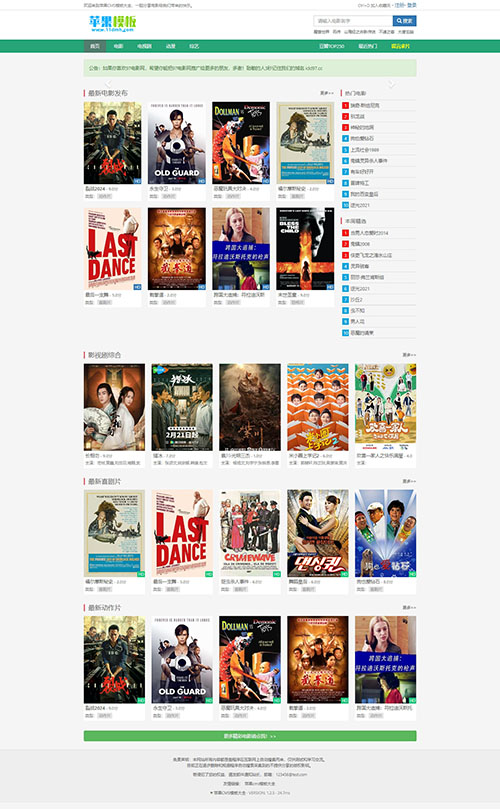 该模板为绿色清爽风格,可以和,绿色简洁影视手机端模板搭配在一起使用,组合一套pc/wap双模板文件,以实现电脑端及手机端访问,同样已针对原模板升级如下: