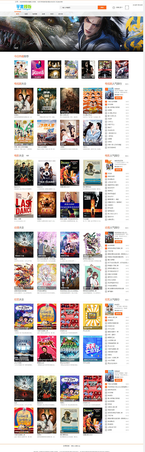红色与橙色暖色系风格,美观大方,代码标准兼容性强。该模板为苹果CMS8电脑端。